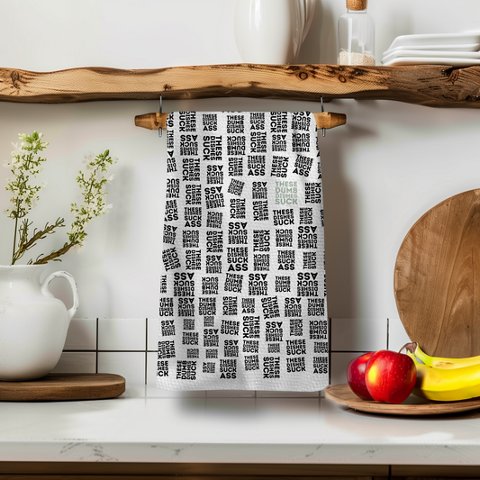 Dishes Are Dumb Black and White Tea Towel