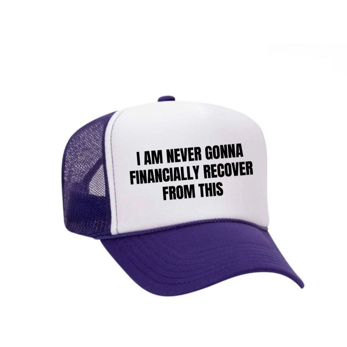 Embrace your financial fate with the "I Am Never Gonna Financially Recover From This" trucker hat. Perfect for anyone who’s spent way too much but still makes it look stylish. This hat adds a humorous touch to your outfit while giving you some much-needed shade. Because if you’re going down, you might as well do it with a smile—and a great hat.