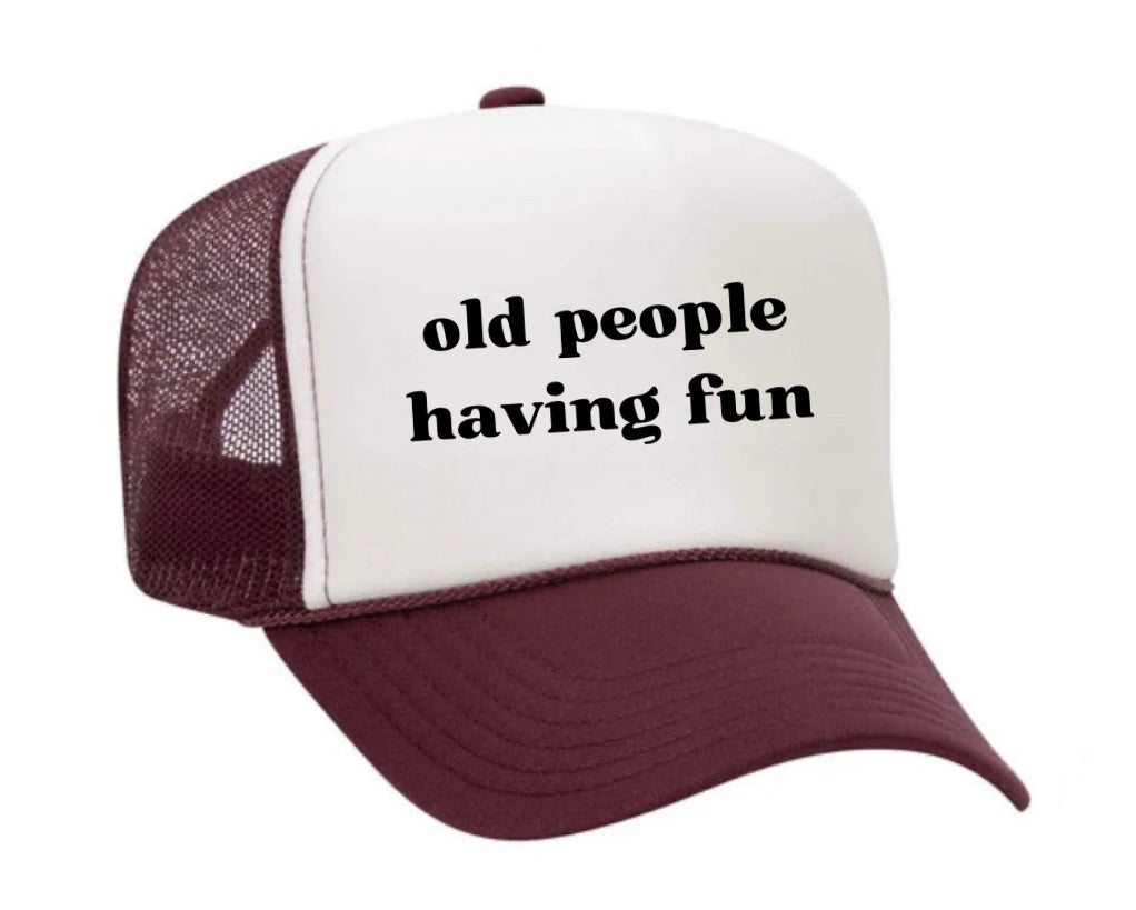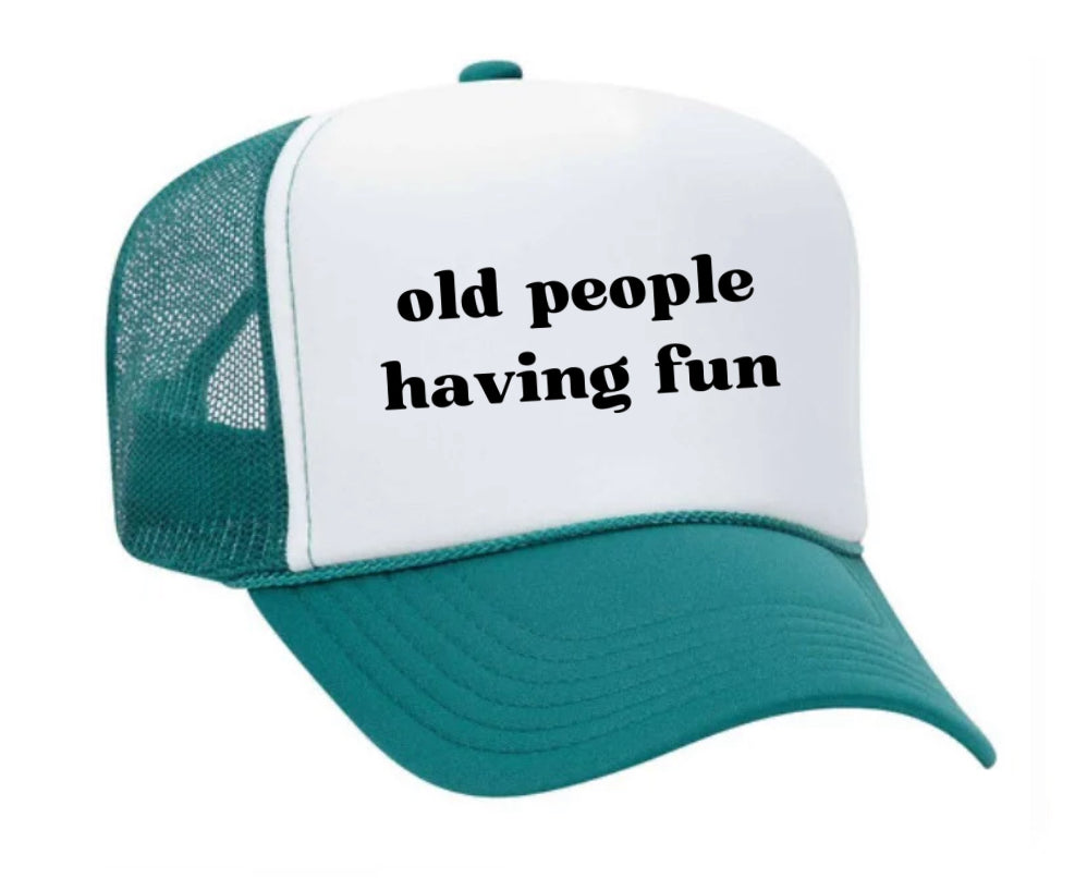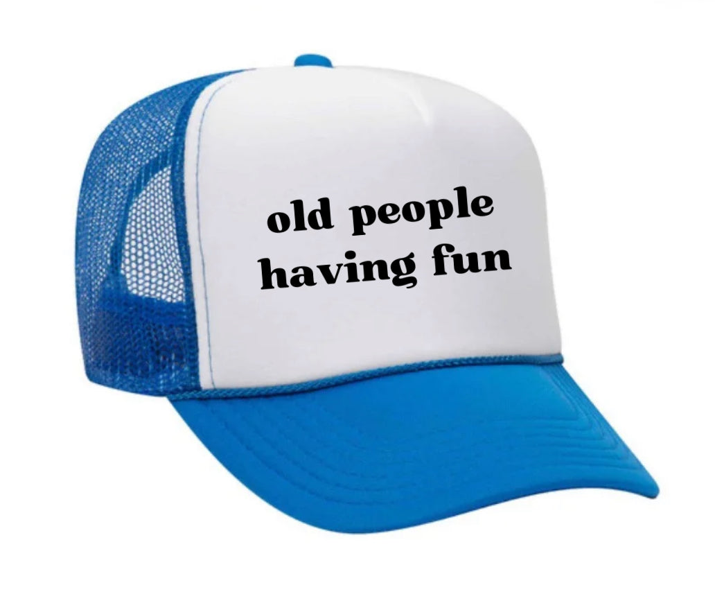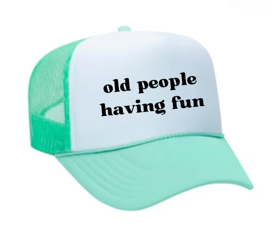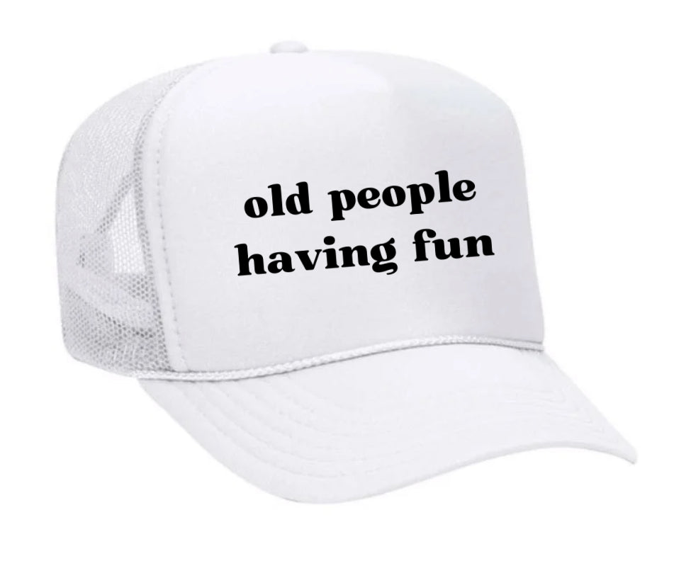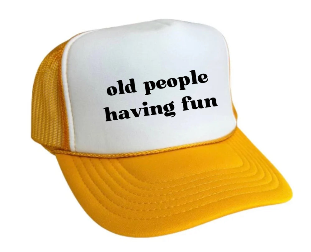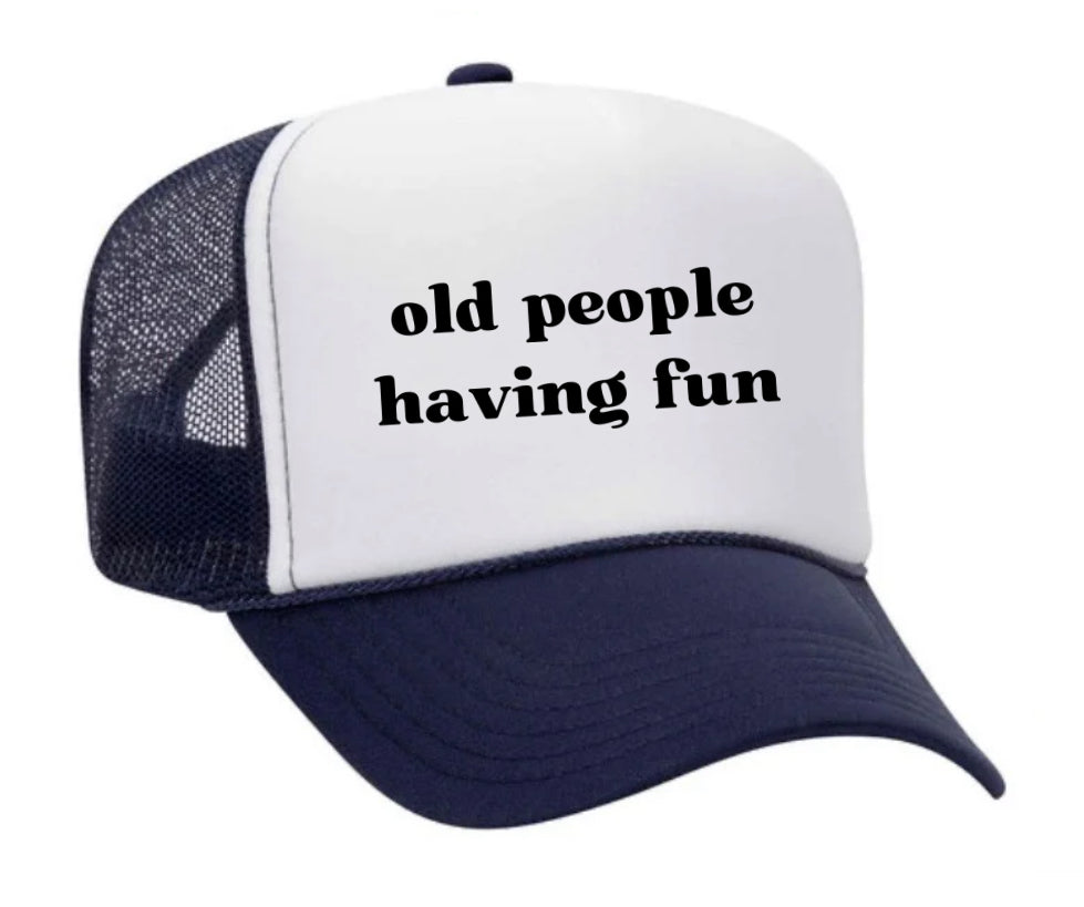 Discover the joy of aging with the Old People Having Fun Trucker Hat. Made for the young at heart, this hat reminds us all that age is just a number. Embrace the wisdom and experience that comes with getting older, and let this hat be a testament to the fact that fun never fades.