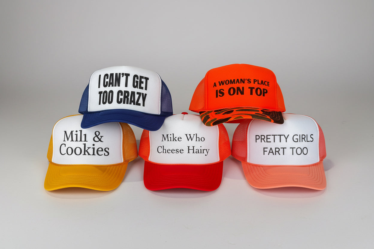 Get 5 of our bold, inappropriate trucker hats in one amazing bundle! Each box is a curated collection of our edgiest designs at an unbeatable price.