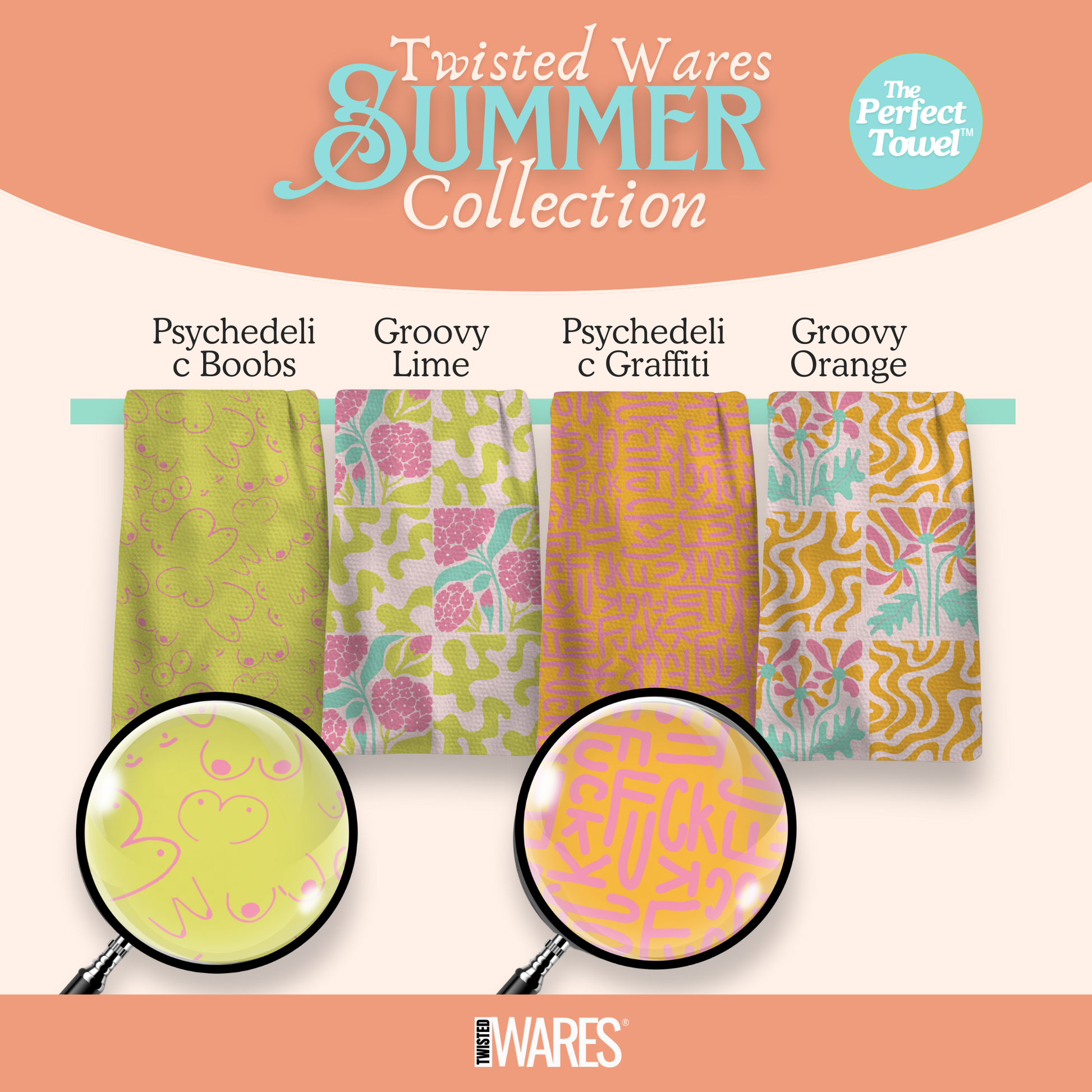 Unleash some rebellious charm in your kitchen with the "Psychedelic Graffiti" towel from our Summer Illusion Collection. Featuring a vibrant pattern of layered graffiti-style "fuck" text in bold colors, this towel adds a playful edge to your space. Perfect for anyone who loves a mix of humor, attitude, and practicality.