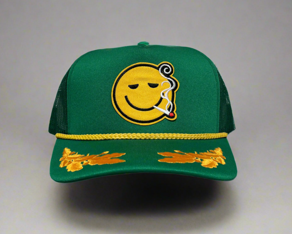 "Get your smile on with the Smiley Stoner Patch Hat. This playful hat features a smiley face patch and will definitely add some personality to your outfit. Perfect for those who like to keep it light and fun (even while indulging in some herbal relaxation)."